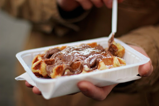 One of the very first things we did was grab a Belgian waffle. There are actually two types of Belgian waffles – Brussels waffles (which are what we would normally think of as “Belgian” waffles in the United States) and Liege waffles. Liege waffles (which is what we got) are denser and richer. We got ours with Nutella and it was a big hit with everyone.