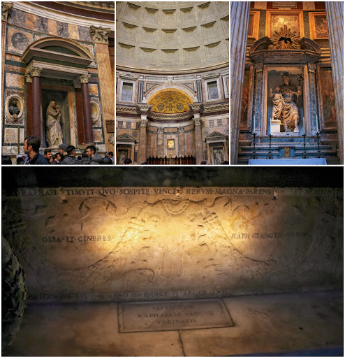 | Inside the Pantheon. The bottom photo is of Raphael’s tomb. |