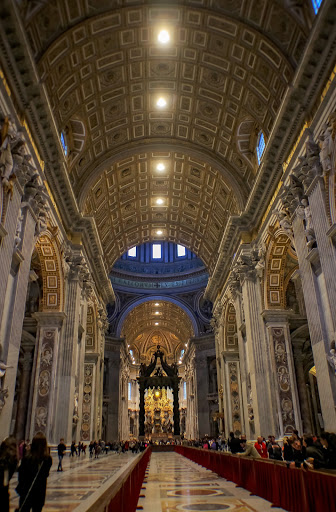 St. Peter’s Basilica was designed in part by Michelangelo and is one of the largest churches in the world.