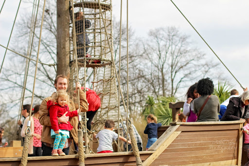 This playground has elements of Peter Pan to it with it’s pirate ship and teepees and also has a fun musical area and several playgrounds. It was a great place for both our girls to play and had plenty of activities for older children as well.